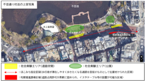 道路・歩道・橋梁空間等の一体的活用による滞在環境の質向上と地域の賑わい創出。